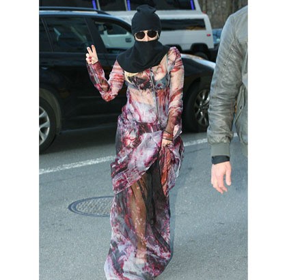 Tampil di jalanan kota New York hari Minggu lalu, Gaga menutupi kepalanya (bahkan mulut) dengan kain hitam. Wajahnya saat itu benar-benar tertutup, begitu juga matanya yang memakai kacamata hitam lensa bundar.