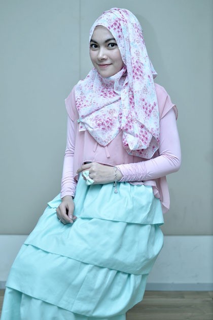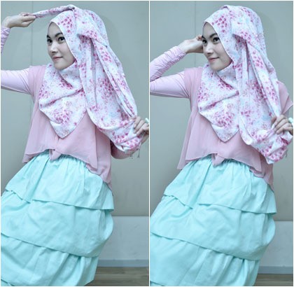 Tutorial Hijab dengan Scarf Bermotif Menutupi Dada