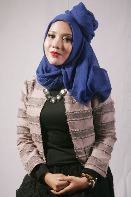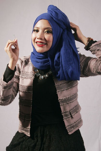 Tutorial Hijab dengan Aksen 'Topi Besar' untuk Tampil Unik