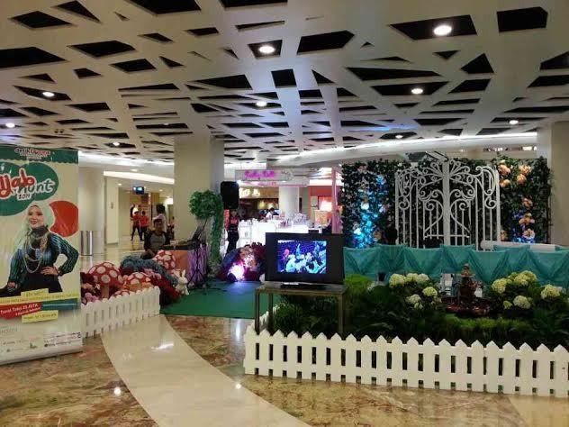 Di booth Hijab Hunt ini selain bisa mendaftar diri, Anda juga bisa menikmati sejumlah hiburan yang disediakan. Eka Gustiwana dan penyanyi Nadia Rafika tengah membawakan sebuah lagu.
