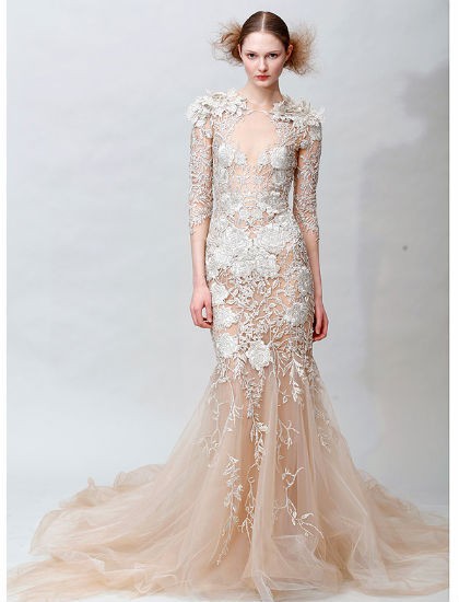 Gaun tersebut khusus dibuat untuk hari pernikahan Behati. Berwarna putih gading, gaun itu tampak sangat romantis dengan aplikasi bunga yang dibentuk di atas kain tulle.
