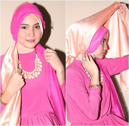 Tutorial Hijab: Kreasi Turban dengan 2 Scarf Panjang untuk ke Pesta