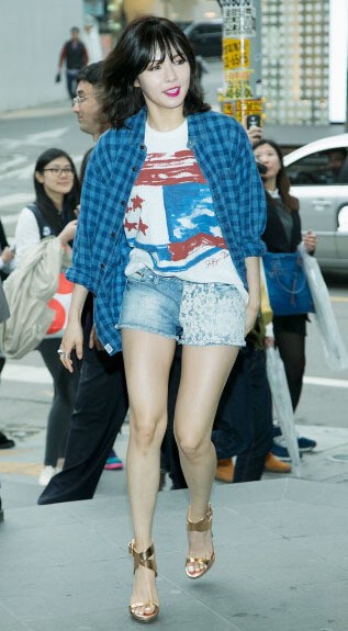 Korean Style : Gaya Kasual Selebriti Korea dengan Busana Motif Kotak-kotak