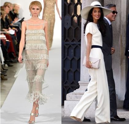 Oscar membuatkan Amal dress bergaya ala film Great Gasby untuk resepsi pernikahan dengan George. Busana tersebut merupakan salah satu koleksi dari Oscar de la Renta Fall 2014 yang dirilis pada Februari lalu.