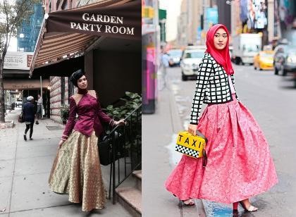 Untuk pemotretan di Times Square ini saya mengenakan blazer dan mini skirt yang terbuat dari kain tenun Palembang. Busana tersebut dipadukan dengan jeans dan turban sehingga penampilan lebih casual. Selain saya, dua model Amerika yang terpilih juga mengenakan busana serupa, blazer berbahan Tenun Palembang, saat berpose untuk pemotretan lookbook.