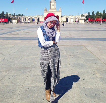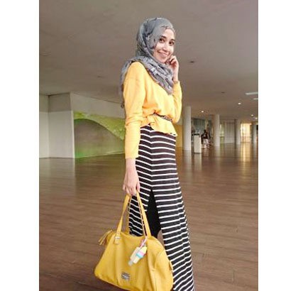 Hijab Style: Trik Hijabers Siasati Bergaya dengan Rok Belahan Paha Tinggi
