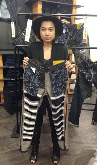 "Aku bukan menyilet tapi melubangi dengan kotak-kotak karena ingin memberikan nafas baru saja. Yang aku lakukan ini lebih kepada ready to wear, jadi kreasiku ini masih bisa diremake untuk dijual kembali," kata Dewi saat berbincang dengan Wolipop.