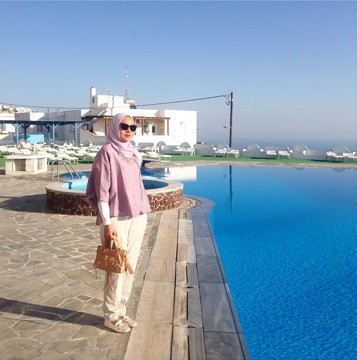"Sebisa mungkin jangan pakai bahan warna hitam," saran desainer busana muslim sekaligus ikon hijabers muda, Dian Pelangi.