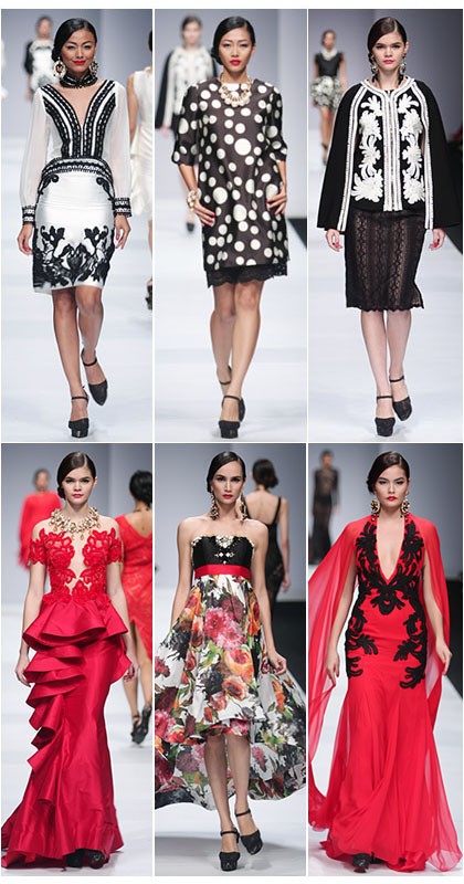 Seperti yang diterangkan oleh sang desainer, di koleksinya kali ini akan ada motif floral dan polkadot yang mendominasi, selain teknik bordiran dan juga permainan batuan payet. Antara atasan crop top hitam berhias payet di garis lehernya, dengan paduan bersama kemeja putih dan rok pensil dalam motif polkadot. Atau rok pensil dengan detail lipit di bagian bawah yang tampak elegan bersama atasan hitam dengan teknik ruffle di lengan.