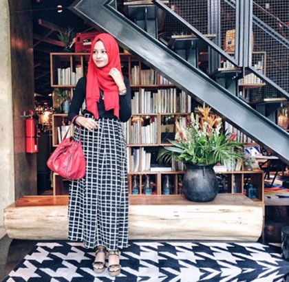 Busana maksi ini bisa dipadukan dengan luaran oversized, cropped jacket, atau sweter warna netral. Ketika ingin menggunakan padu padan busana monokrom lengkapi dengan jilbab warna hitam atau putih.