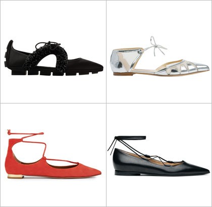1. Sepatu Flat Bertali dengan Ujung Lancip