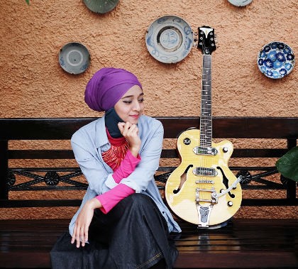 Padahal sebelumnya, ia senang menggunakan pashmina panjang menjuntai yang menutupi bagian depan. Namun hal ini cukup mengganggunya di kala ia bermain gitar, hijab yang dikenakannya secara tak sengaja terkait di tali dan senar gitar hingga tak bisa digunakan lagi.