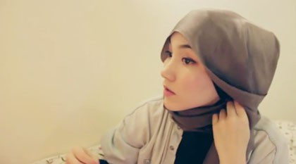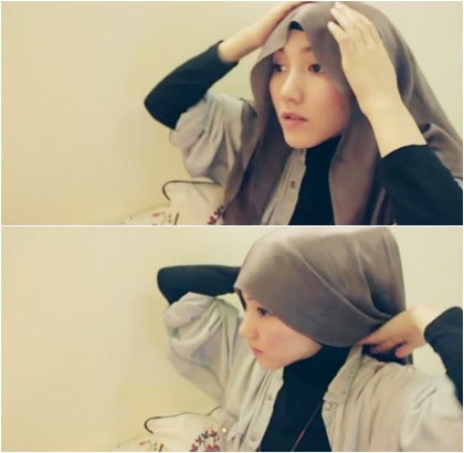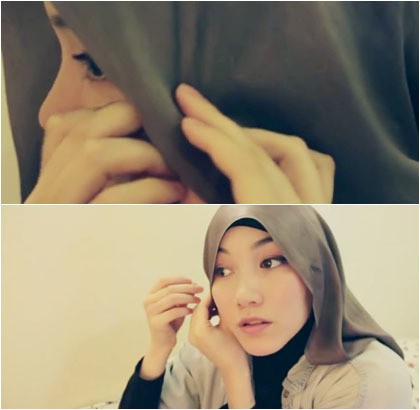 Tutorial Hijab dengan Scarf Satin Segiempat Khas Hana Tajima