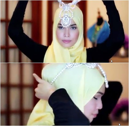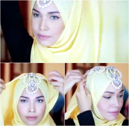 Tutorial Hijab dengan Kalung Sebagai Aksesori Kepala untuk ke Pesta