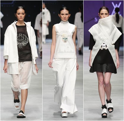 Beberapa tampilan juga terkesan futuristik berkat detail yang dituangkan sang desainer. Seperti efek embroidery 3D, printing, dan teknik laser cut diaplikasikan dalam atasan ataupun terusan berpotongan oversized.