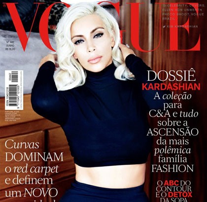 Kim Kardashian tampil di sampul majalah Vogue Brazil untuk edisi Juni 2015 dengan dandanan menyerupai Marilyn Monroe. Foto ini diambil oleh fotografer Ellen Von Unwerth.