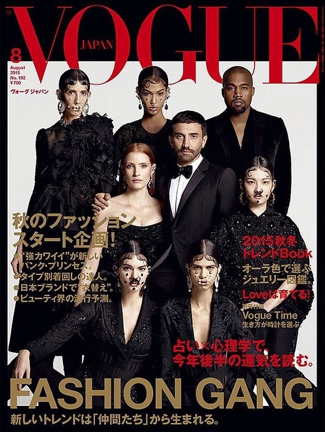 Riccardo Tisci, creative director dari Givenchy yang koleksinya dipakai sebagai busana para model di sampul depan Vogue itu berada di tengah. Ia ditemani dengan aktris Hollywood yang menjadi inspirasinya, Jessica Chastain yang terlihat glamour dengan gaun strapless berkilauan.