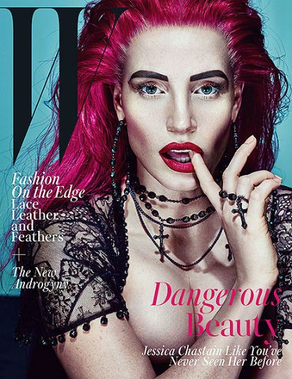 Wajah aktris Jessica Chastain menghiasi sampul majalah fashion 'W' edisi November 2015. Tapi bila melihatnya sepintas, Anda mungkin akan sulit mengenali sosok aktris nominator Oscar ini. Pasalnya, Jessica bertransformasi total dengan dandanan yang hampir menyerupai tampilan punk-gothic.
