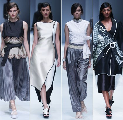 "Koleksi ini sempat ditampilkan di Paris Spring/Summer 2016 jadi sudah siap. Di sana kita bertemu pembeli dari seluruh dunia dan bertransaksi. Tanggapannya positif dan selalu ada peningkatan animo. Kali ini main digital print saja dan ragam hias ambil motif batik," kata Toton sesaat sebelum show di Fashion Tent.