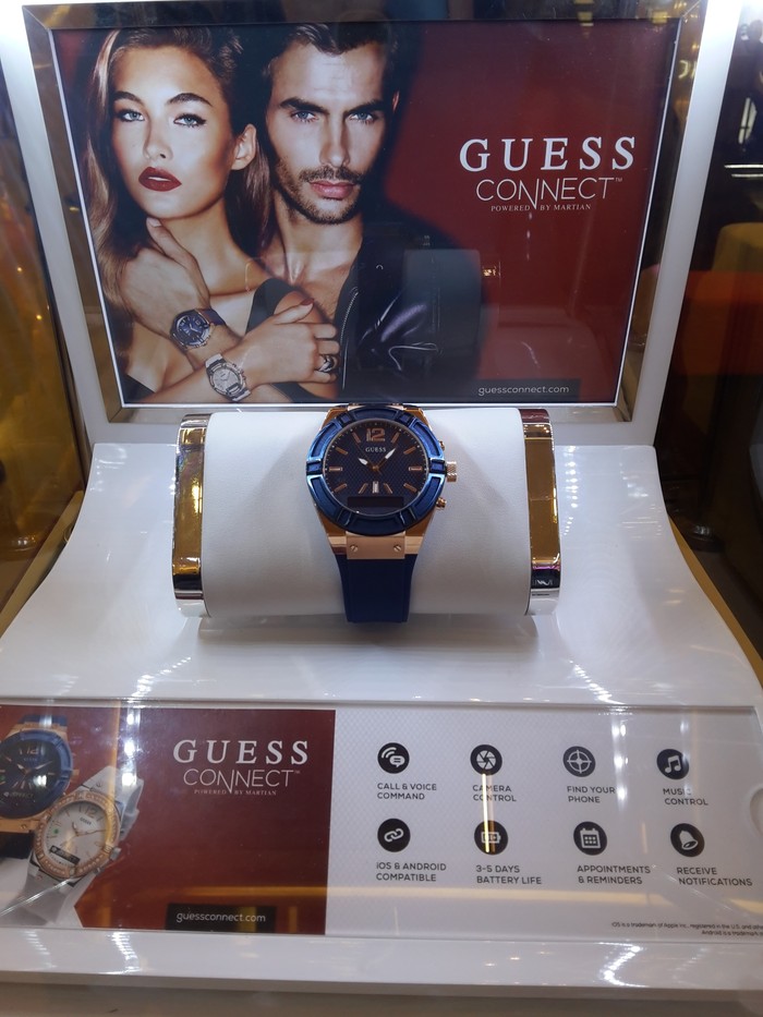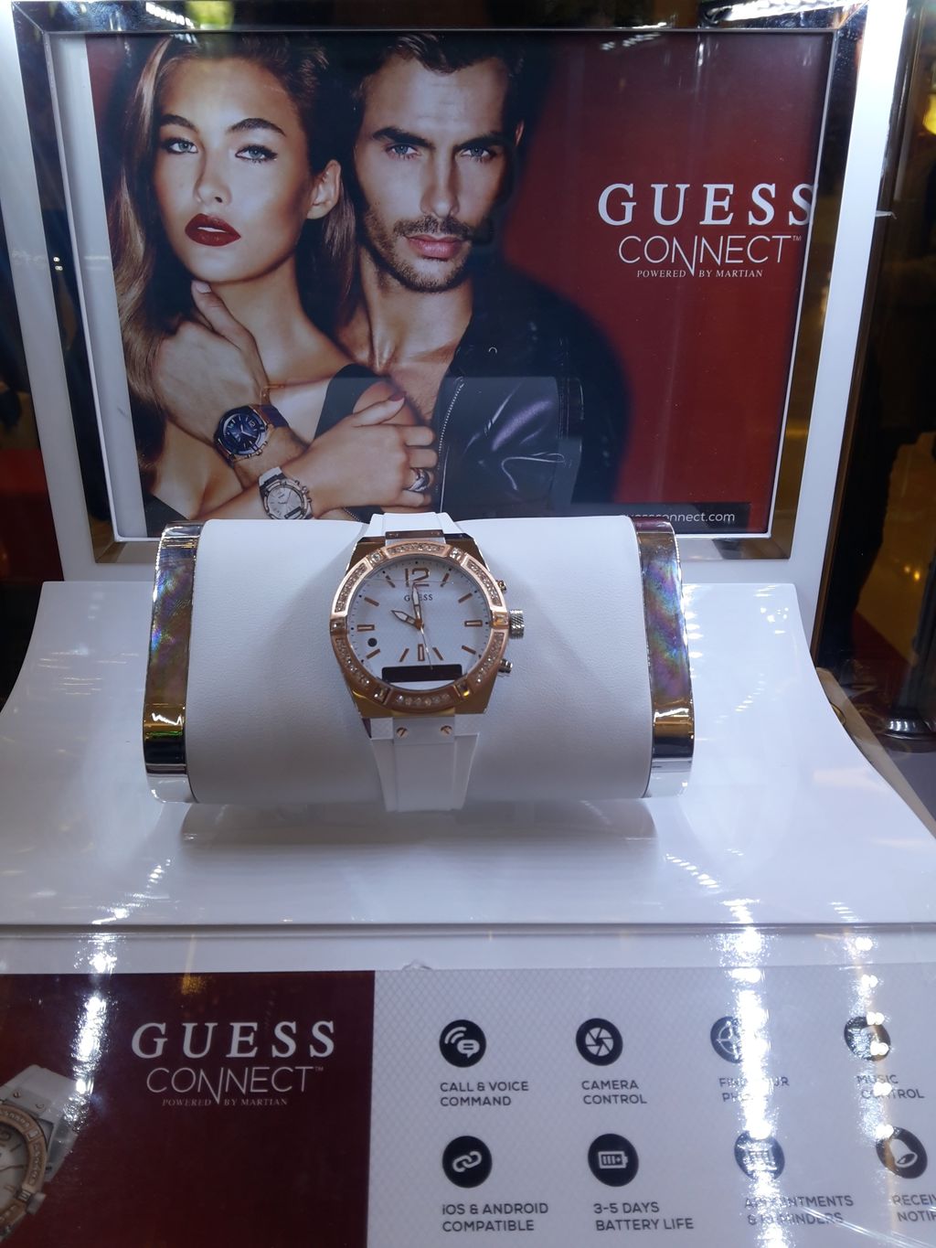 Ada beberapa fitur yang berada di dalam ponsel turut dihadirkan di sini, mulai dari menerima telepon, membalas pesan singkat, alarm, dan mendengarkan lagu. Untuk menggunakannya, diperlukan aplikasi 'Guess Connect' yang bisa diunduh untuk pengguna iOs dan Android. Setelah itu, jam tangan disambungkan ke ponsel melalui bluetooth dan fungsi-fungsi canggih tersebut sudah bisa digunakan.