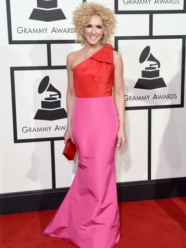 Vokalis band country Little Big Town ini muncul dalam balutan gaun dwi warna, merah dan pink, dengan garis leher asimetris. Gaun itu dipercantik dengan dekorasi pita besar pada bagian bahunya. (dng/dng)
