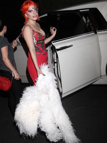Setelah selesai membuat kagum semua tamu yang hadir saat ia menyanyikan tribut kepada David Bowie, penampilan Lady Gaga di pesta malamnya tak kalah menarik atensi. Masih dengan rambut merah dan gambar bintang di wajah ala Ziggy Stardust, penyanyi eksentrik ini memilih gaun merah Marc Jacobs dan sepatu dari Brian Atwood.