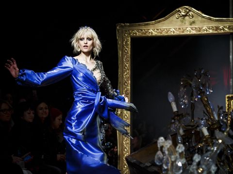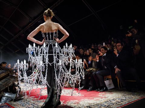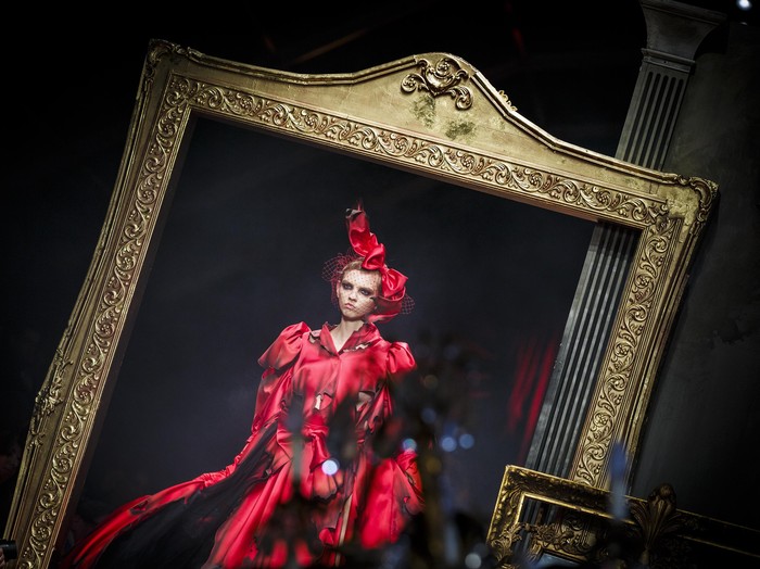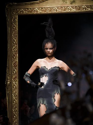 Beberapa model tampil mengenakan ballgown sobek dan seperti hangus terbakar. Potongan tampak tak beraturan, dengan detail cut-out di sana-sini. Show semakin dramatis dengan kepulan asap, menambah suasana suram panggung runway.