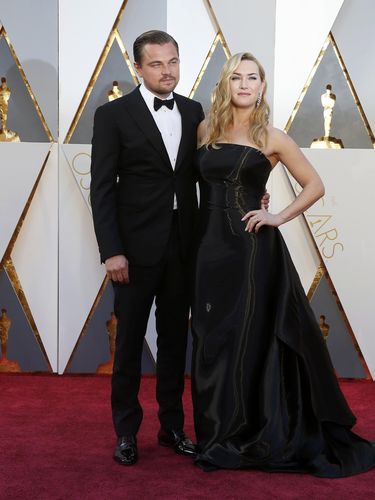 Hadir sebagai nomine aktris pendukung terbaik, Kate mengenakan gaun strapless hitam berekor karya Ralph Lauren. Di karpet merah, ia sempat berpose dengan Leonardo DiCaprio, seolah mengulang momen kebersamaan mereka sebagai bintang film 'Titanic' di Oscar 1998.