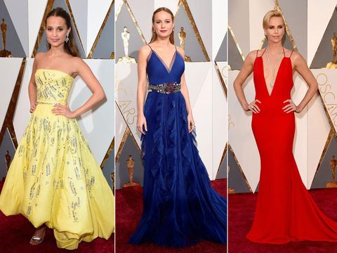 Selebriti menghangatkan suasana dengan gaun berwarna cerah seolah menyambut kehadiran musim semi. Mulai dari warna merah dari gaun Dior Charlize Theron, gaun ungu yang hampir serupa antara Tina Fey dan Reese Witherspoon, warna oranye dari kreasi Stella McCartney yang dikenakan Olivia Munn, biru elektrik dari gaun Gucci Brie Larson dan tentunya gaun kuning Louis Vuitton milik Alicia Vikander.