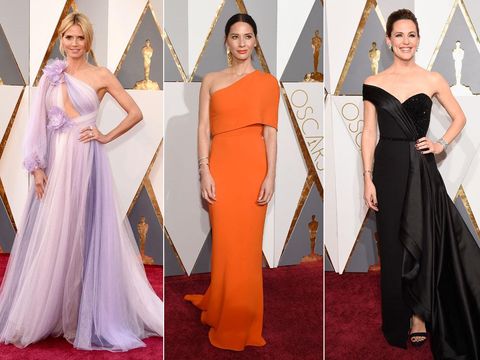 Potongan bahu terbuka semarak tampil di runway pekan mode dunia, dan kini para selebriti di Oscar mengaplikasikannya dengan cara yang elegan yakni gaun berpotongan one shoulder atau hanya menampilkan satu sisi bahu. Tren ini dimulai dengan kehadiran Olivia Munn dan gaun Stella McCartney oranye yang minimalis. Kemudian kembali terlihat di gaun Atelier Versace milik Heidi Klum dan Jennifer Garner, serta gaun rancangan SAFiYAA untuk Andra Day.