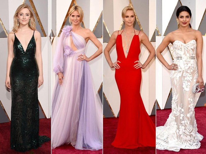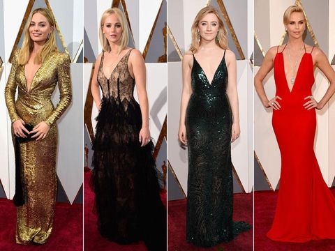 Para bintang dari Charlize Theron, Jennifer Lawrence, Cate Blanchett, Brie Larson, Saoirse Ronan, Daisy Ridley, Margot Robbie hingga Chrissy Teigen yang tengah hamil memiliki satu kesamaan gaun di malam Oscar tahun ini, yaitu plunging neckline atau gaun berbelahan dada rendah. Berbagai desainer di balik gaun indah mereka seperti Dior, Marchesa, Armani hingga Gucci kompak membuat plunging neckline sebagai tren musim semi 2016.