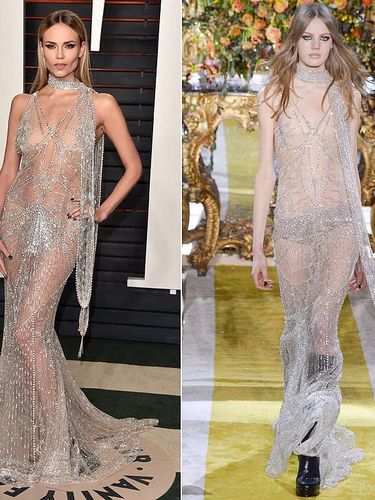 Naked dress masih menjadi favorit desainer untuk ditawarkan pada koleksi musim gugur 2016, salah satunya dari Roberto Cavalli. Model Rusia ini menampilkan tiap lekuk tubuhnya di balik material menerawang dan payet Swarovski berkilau di antaranya. Gaun ini tampil bersama tren naked dress lainnya dari Cavallin di Milan Fashuon Week hari Minggu (25/2/2016) lalu.