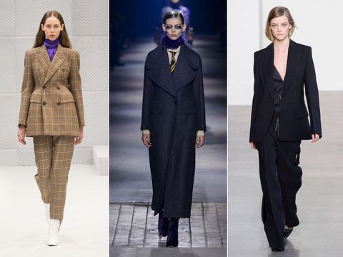 Pasangan antara jas dan celana berpotongan tegas dan struktural kembali mendapat sentuhan berbeda oleh desainer dunia seperti Balenciaga dan Calvin Klein. Sentuhan androgyny diaplikasikan Dries Van Noten dengan menambahkan dasi berwarna kontras pada setelan palet gelap.