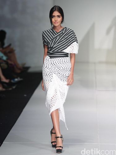 Berkomitmen untuk selalu mengangkat wastra tradisional dalam setiap karyanya, Zaskia kali ini mengeksplor kain lurik Yogyakarta dan Solo sebagai material utamanya. Kain tersebut diolah menjadi outerwear, dress, dan atasan. Ia menambahkan aksen ruffle pada dress dengan dominasi warna hitam pada karyanya. (itn/itn)
