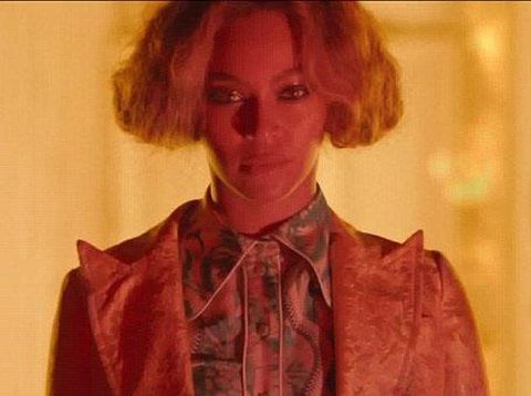 Beyonce kembali mengganti baju dan gaya rambutnya di salah satu video. Kali ini dengan rambut pendek, ibu dari Blue Ivy itu memakai busana yang maskulin namun tersirat sisi feminin lewat ornamen motif pada setelan blazer dan kemeja, keduanya datang dari label Gucci.