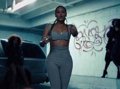 Beyonce kemudian memakai koleksi busana athleisure dari brand Kanye West, Yeezy. Ia memakai crop top dan legging senada seperti terlihat dalam video 'Don't Hurt Yourself'.