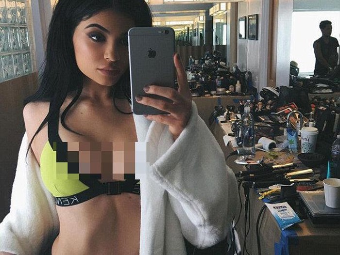 Bintang realiti Keeping Up with the Kardashians ini memamerkan bentuk tubuhnya dengan bikini bertuliskan namanya dan sang kakak, Kendall + Kylie. Bikini berwarna neon itu pun menjadi salah satu koleksi terbaru duo Jenner ini untuk Topshop.