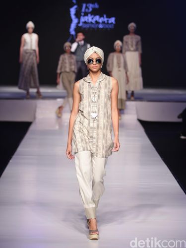 Cropped jacket, celana dan rok highwaist, blouse tanpa lengan mendominasi koleksi tersebut. Para model tampil modis dengan shades (kacamata hitam) serta dekorasi kepala berupa turban.