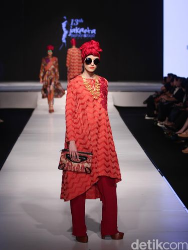 Sebagai sentuhan akhir, Itang menampilkan modelnya dengan penutup kepala bergaya 'kuluk', turban wanita Jambi tempo dulu.
