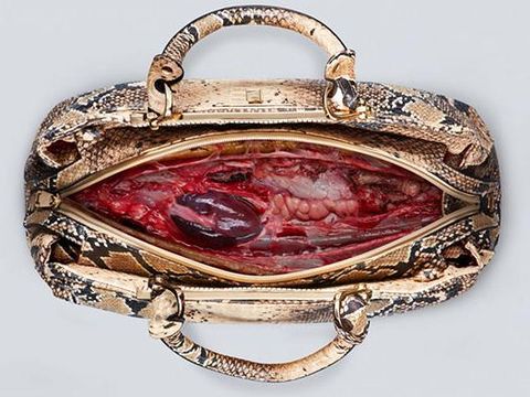Organisasi pecinta binatang PETA (People for the Ethical Treatment of Animals) melakukan berbagai upaya untuk membuat orang tidak lagi memakai barang-barang fashion yang terbuat dari kulit hewan asli. Kampanye terbaru yang mereka buat dengan menciptakan tas hingga jaket yang berisi 'daging' dan 'darah' binatang. Hiii…