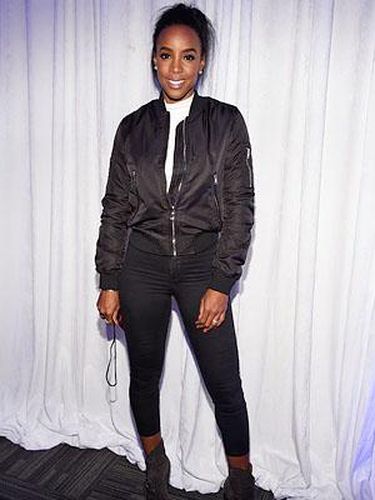 Mantan personel Destiny Child, Kelly Rowland memakai jaket bomber berbahan nilon dan crop legging sebagai padanannya. Demi membuat tampilan ini tetap terkesan feminin, ankle boots dengan hak tinggi pun dipilih Kelly.