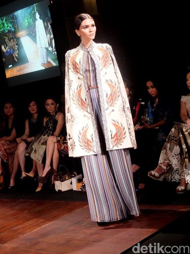 "Kaftan selalu timeless. Maka itu, saya menghadirkannya dalam potongan jumpsuit agar tidak monoton," kata Denny. Koleksi ini