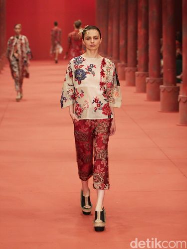 Eksplorasi dalam koleksi 2017 pun dituangkan lewat penggunaan beragam material. Misal menggabungkan bahan mewah seperti lame jacquard, lace dengan tekstur bersama bahan yang tampak lebih kasual, misalnya linen dan denim.