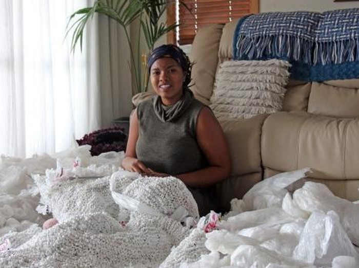 Wanita Ini Buat Gaun Pesta dengan Jahit 300 Kantung Plastik