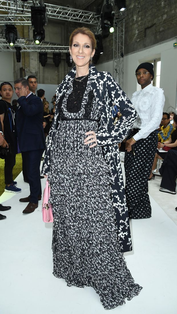 Muncul di peragaan busana Christian Dior, pelantun 'My Heart Will Go On' ini berhasil menunjukkan sisi edgy-nya dalam balutan setelan serba hitam Dior yang dipadu dengan pointed heels hitam. Ia menyempurnakan gayanya dengan sarung tangan hitam dan tas kulit flap Dior.