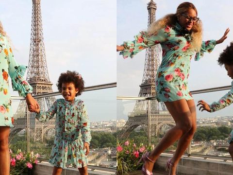 Gaya Kompak Beyonce & Putrinya Bergaun Gucci di Paris