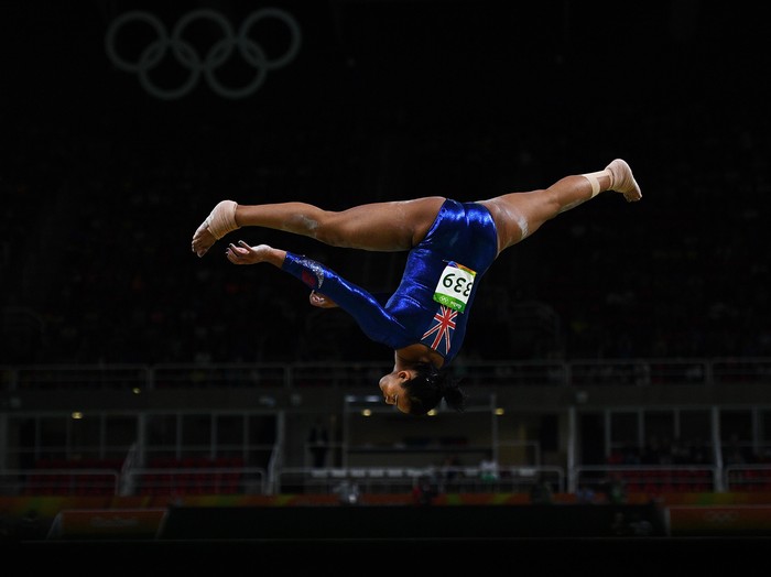Dengan desainer Stella McCartney menjadi otak di balik kostum kontingen Inggris, sudah tentu penampilan para atlet akan mencuri perhatian. Leotard biru itu menghadirkan lambang bendera Inggris Raya, Union Jack di bagian belakang, dan juga taburan kristal yang mewah di depannya.