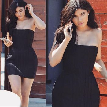 Ia muncul dalam balutan strapless little black dress dari rumah mode Balmain yang mengekspos kakinya yang seksi. Wanita 19 tahun itu menyempurnakan penampilannya dengan rambut panjang yang tergerai bebas dan sandal heels hitam.