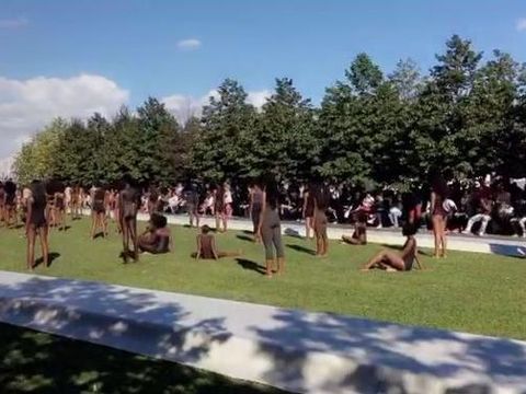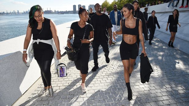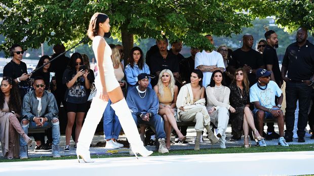 Di peragaan yang mulai molor dua jam itu, puluhan model dalam balutan busana minim benuansa nude dan hitam berdiri di tengah runway yang mengelilingi taman bermandikan sinar matahari nan terik. Mereka berada di situ sembari menunggu model lain muncul di runway. Sementara itu, para tamu, termasuk istri Kanye, Kim Kardashian, dan bos majalah Vogue Anna Wintour, duduk manis di bawah rindangnya pohon.