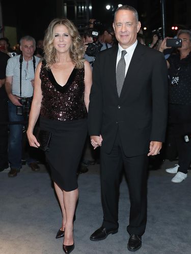 Pasangan aktor dan aktris ini tampil serasi dengan busana berpalet gelap. Gaya klasik dan elegan terefleksi dari setelan jas hitam-hitam Hanks, sementara sang istri cukup tahu bagaimana berbusana sesuai usianya yang hampir menginjak kepala 6. Rita memadankan blouse tanpa lengan beraksen sequin dan rok pensil hitam. Simpel, matang, tapi tetap chic.